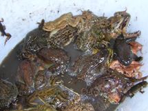 AmphibienDurch unsere intensiven Bemühungen zum Schutz dieser Tiere konnten mit Unterstützung der Stadt Obertshausen elf neue Laichgewässer für Frösche, Kröten und Molche geschaffen werden. Den kleinen Erlenbruch am Hausener Friedhof haben wir gerade noch davor bewahrt, endgültig unter Müll und Unrat zu ersticken. Mehrere Wagenladungen Gerümpel wurden zusammengetragen und ordnungsgemäß beseitigt. Mit dem Bau der verlängerten Tempelhofer Straße wurde ein wichtiger Lebensraum von Amphibien zerschnitten. Hier stellten wir zusammen mit den anderen Naturschutzverbänden in der kritischen Zeit im Frühjahr Leitzäune auf und gruben Fangeimer ein. Somit konnten die Tiere sicher über die Straße zu ihrem Laichgewässer gebracht werden. Im Frühjahr 2007 wurden ein stationärer Leitzaun und zwei Untertunnelungen der Straße gebaut. Dadurch soll dieser Gefahrenpunkt für die Amphibien weitgehend entschärft werden. ![]() Ein Eimer voller Frösche! |